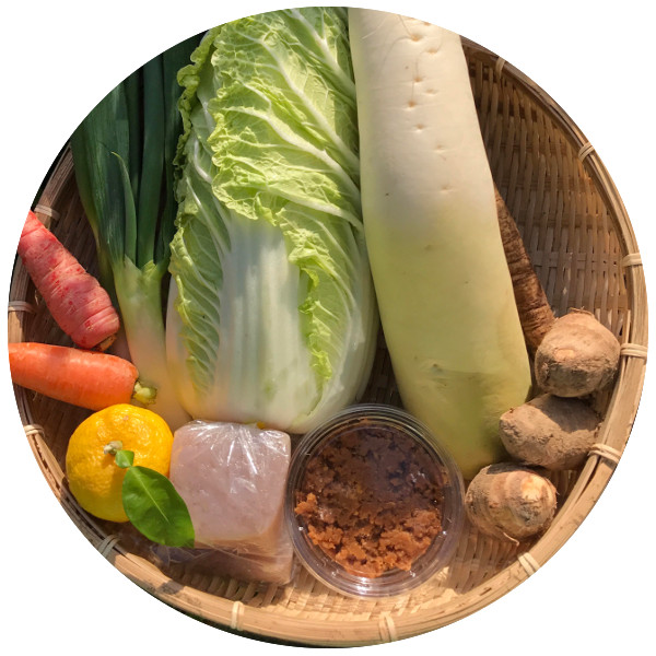 冬野菜の代表的なお野菜が勢ぞろいでございます。栄養価も高くお野菜本来の美味しさと旨みがつまっております。