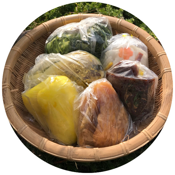 由緒のお漬物の素材は、全て地元で収穫したお野菜でございます。もちろん、その季節その時期でしか採れない旬のものに甘味料、保存料等を使わずに粕のみでひとつひとつ手作業で丁寧に漬けております。食感と素材の味を守りつつお出汁も袋にお入れし、あえて真空パックを使用せずお届けいたします。